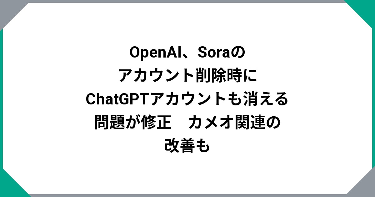 そのほか、一部で話題となっていた、Soraのアカウントを削除するとChatGPTのアカウントも削除する必要がある問題も修正されています。
